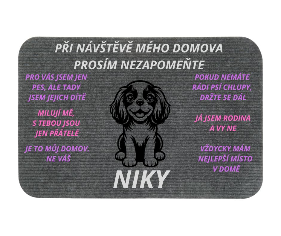 Rohožka s motivem pejska a textem, který pobaví každou návštěvu a zároveň připomene, že váš mazlíček je plnohodnotným členem rodiny.